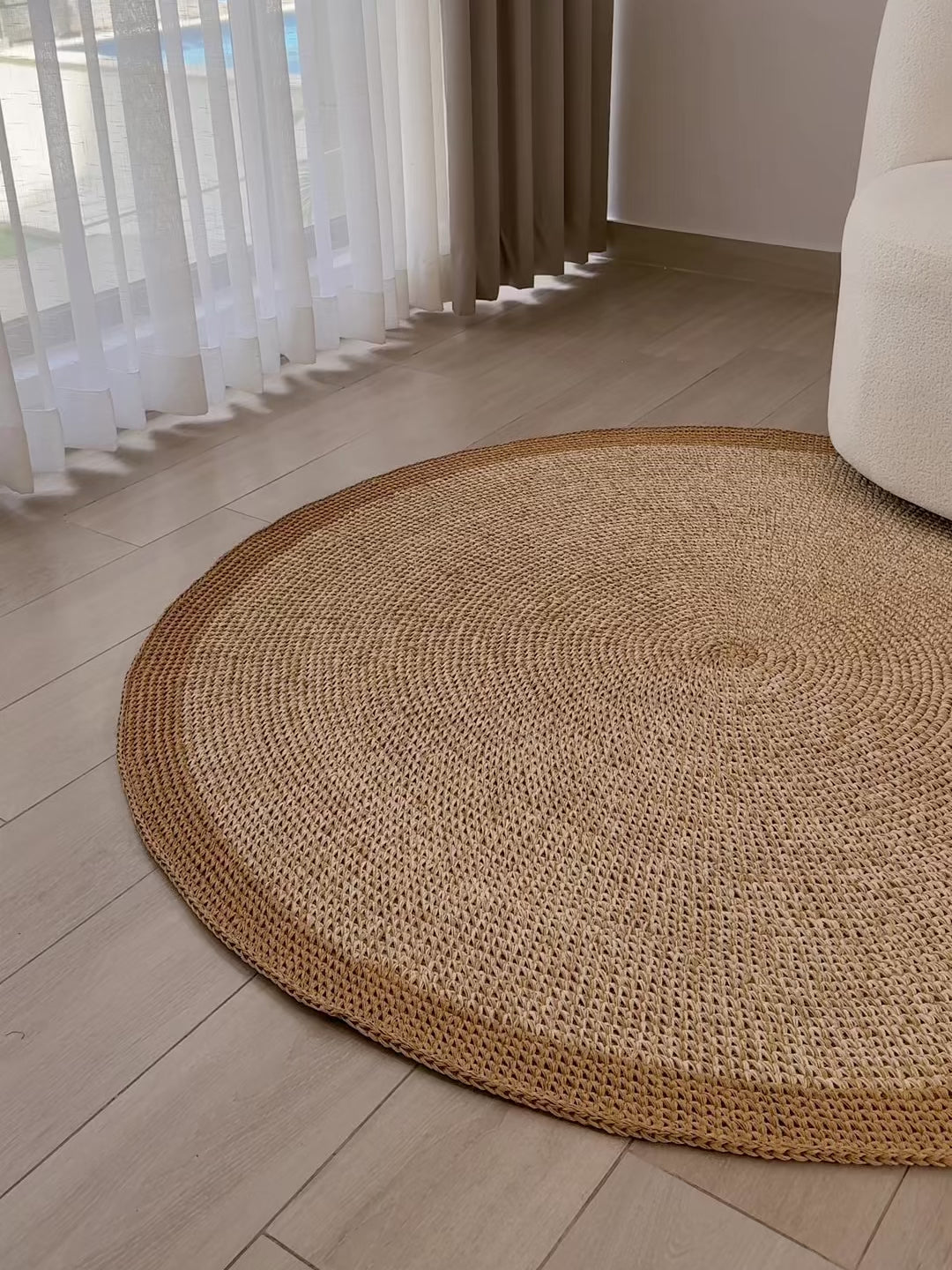 Each rug is handwoven using the traditional crochet technique with two needles, a process that enhances both strength and texture.